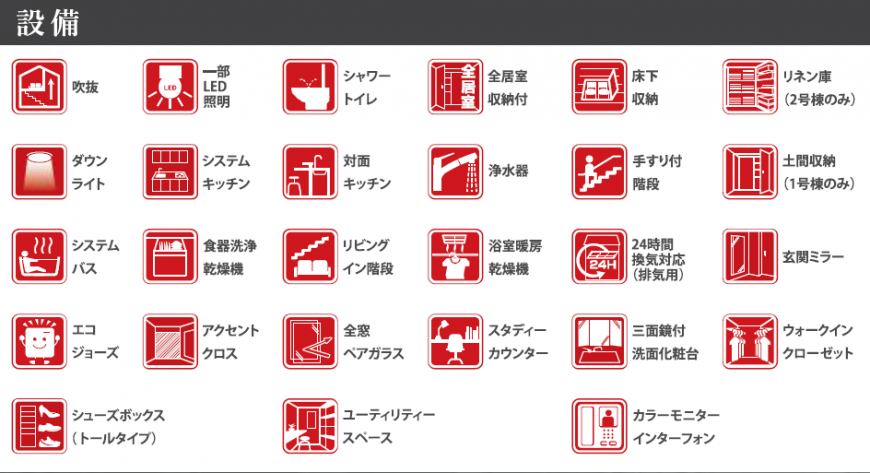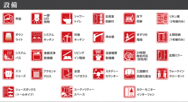 | 設備条件/設備備考 | 仲介手数料ゼロ / オール電化 / システムキッチン / 対面キッチン / 浄水器 / 食器洗浄乾燥機 / 追い炊き / トイレ2ケ所 / バス1坪以上 / シャンプードレッサー / 洗浄便座 / 浴室乾燥機 / 24時間換気システム / 床下収納 / ウォークインクローゼット / TVドアホン付き / 複層ガラス・防犯ガラス / 駐車場有り / 2台目駐車場 / 値下げ物件 / フラット35 / スタディカウンター/ |