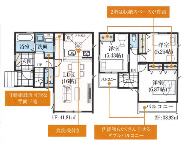 | 設備条件/設備備考 | 仲介手数料ゼロ / システムキッチン / 対面キッチン / 浄水器 / 食器洗浄乾燥機 / 追い炊き / トイレ2ケ所 / バス1坪以上 / シャンプードレッサー / 洗浄便座 / 浴室乾燥機 / 24時間換気システム / 床下収納 / TVドアホン付き / 複層ガラス・防犯ガラス / 駐車場有り / 2台目駐車場 / フラット35 / ガス(都市ガス) / |
